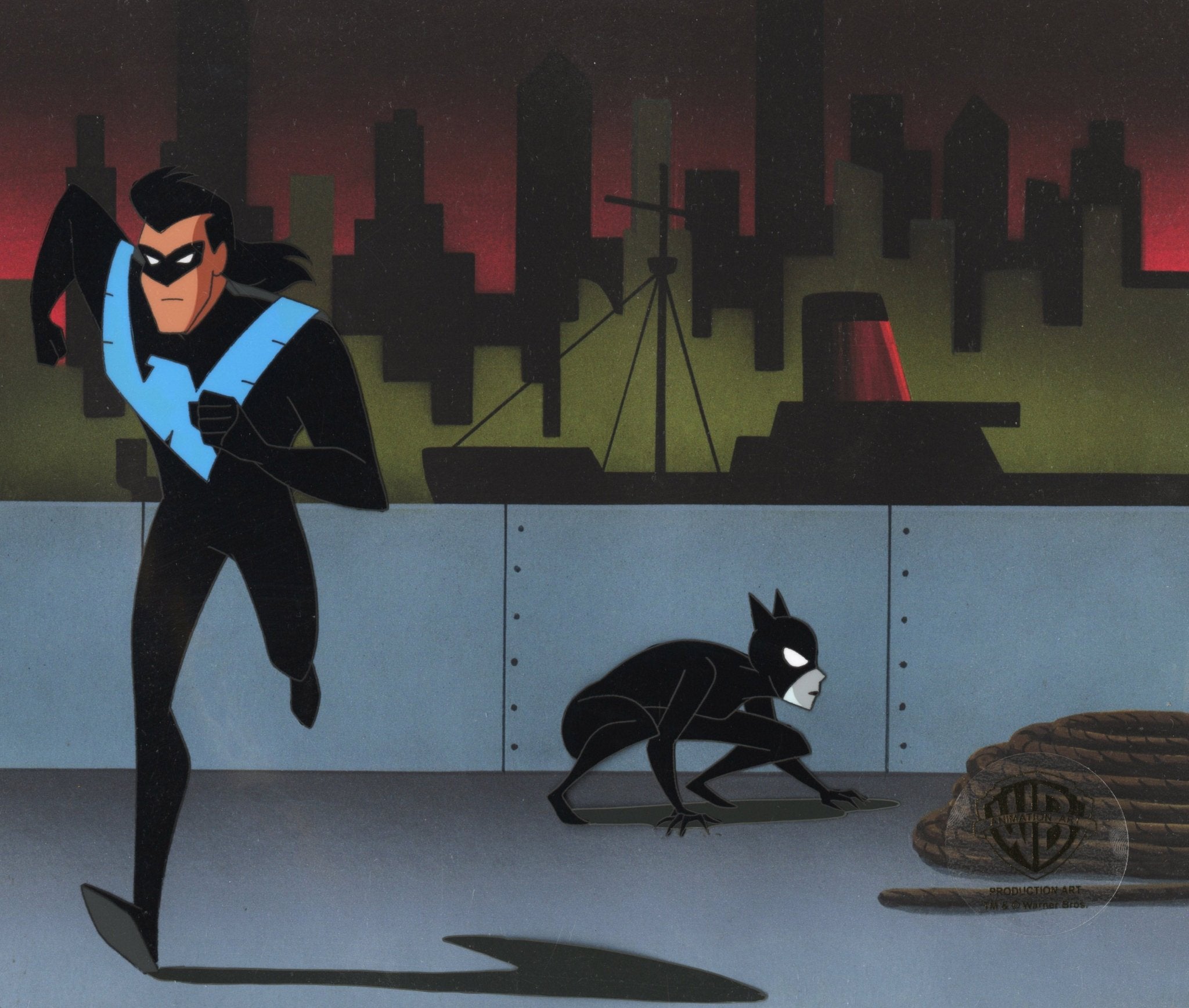 ABOUT THE IMAGE: The New Batman Adventures is an American superhero animated television series based on the DC Comics superhero Batman, the third series in the DC Animated Universe, and a continuation of the 1990s Batman: The Animated Series. It was produced by Warner Bros. Animation and aired on Kids' WB from September 13, 1997, to January 16, 1999. Stories in this series tend to give more focus to Batman's supporting cast, which includes fellow crimefighters Robin, Nightwing, and Batgirl, among others. This piece comes with a certificate of authenticity.