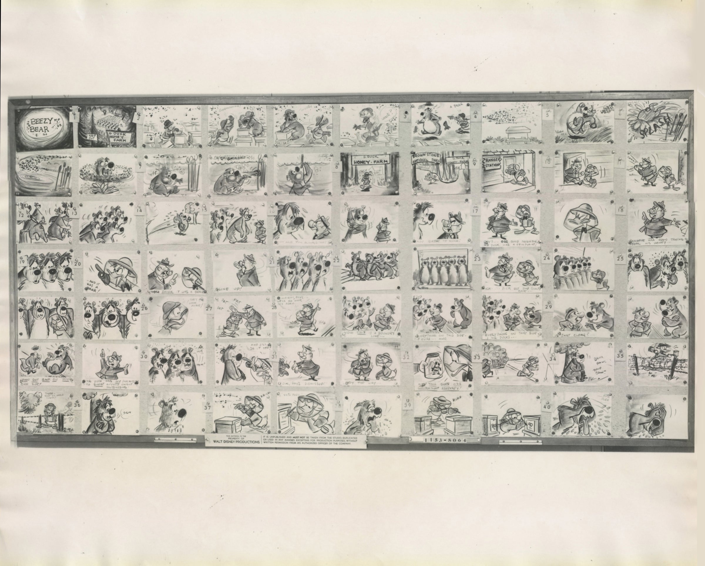 ABOUT THE IMAGE: Breezy Bear is Donald Duck cartoon that was released on September 2, 1955.It was directed by Jack Hannah and filmed in CinemaScope. In the animated short, Humphrey the bear continually tries different ways to steal honey from Donald’s beehives, resulting in conflicts between Donald and Ranger J. Audubon Woodlore when Donald wants the bears to be kept away.