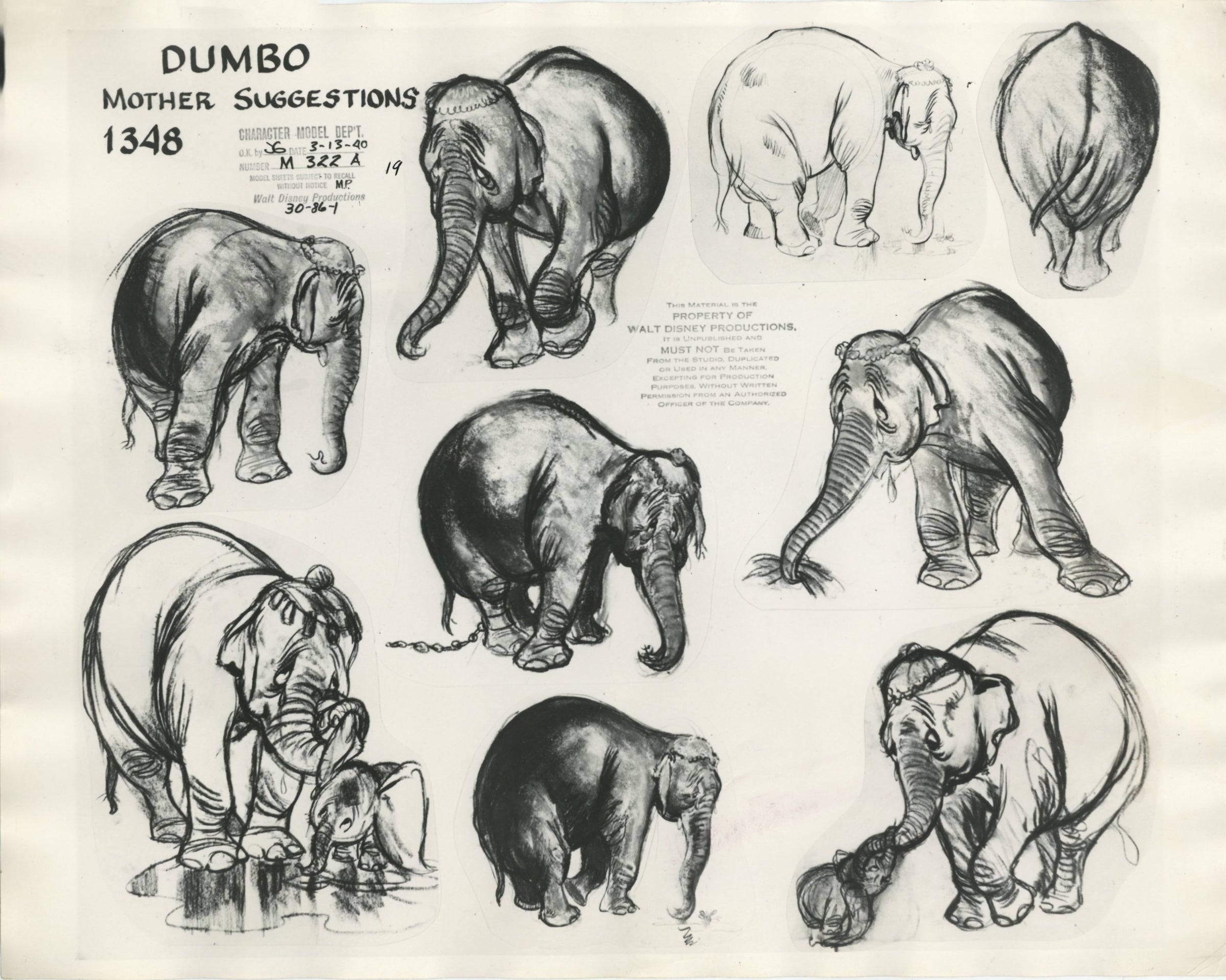 This piece shows signs of light production wear: wrinkling along edges. The embedded date on this model sheet reads March 13th, 1940.