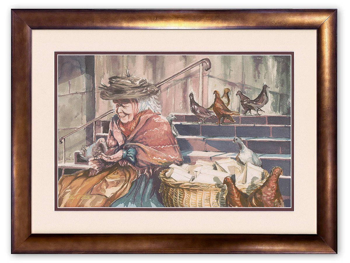 ABOUT THE IMAGE: A limited edition print inspired by Mary Poppins, designed by Disney Legend Tony Baxter. Featuring a powerful image of the Bird Woman selling bread crumbs on the steps of St. Paul's Cathedral, the artist originally designed this piece while in college in the 1960s. At the time, Baxter felt that Mary Poppins was the best film that he had ever seen, and he considered the Sherman Brothers song "Feed the Birds" to be the most poignant song in the film.