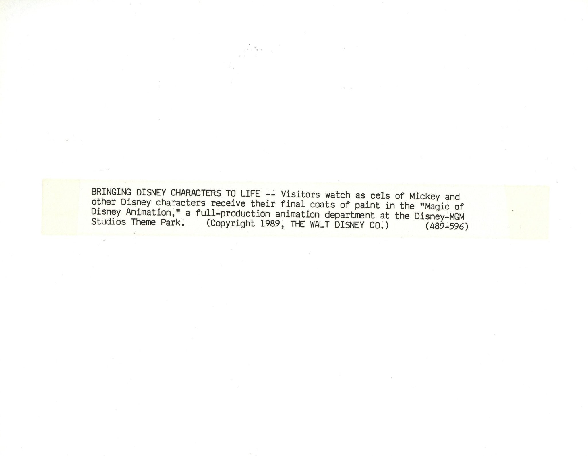 ABOUT THE IMAGE: "BRINGING DISNEY CHARACTERS TO LIFE - Visitors watch as cels of Mickey and other Disney characters receive their final coats of paint in the "Magic of Disney Animation," a full-production animation department at the Disney-MGM Studios Theme Park."