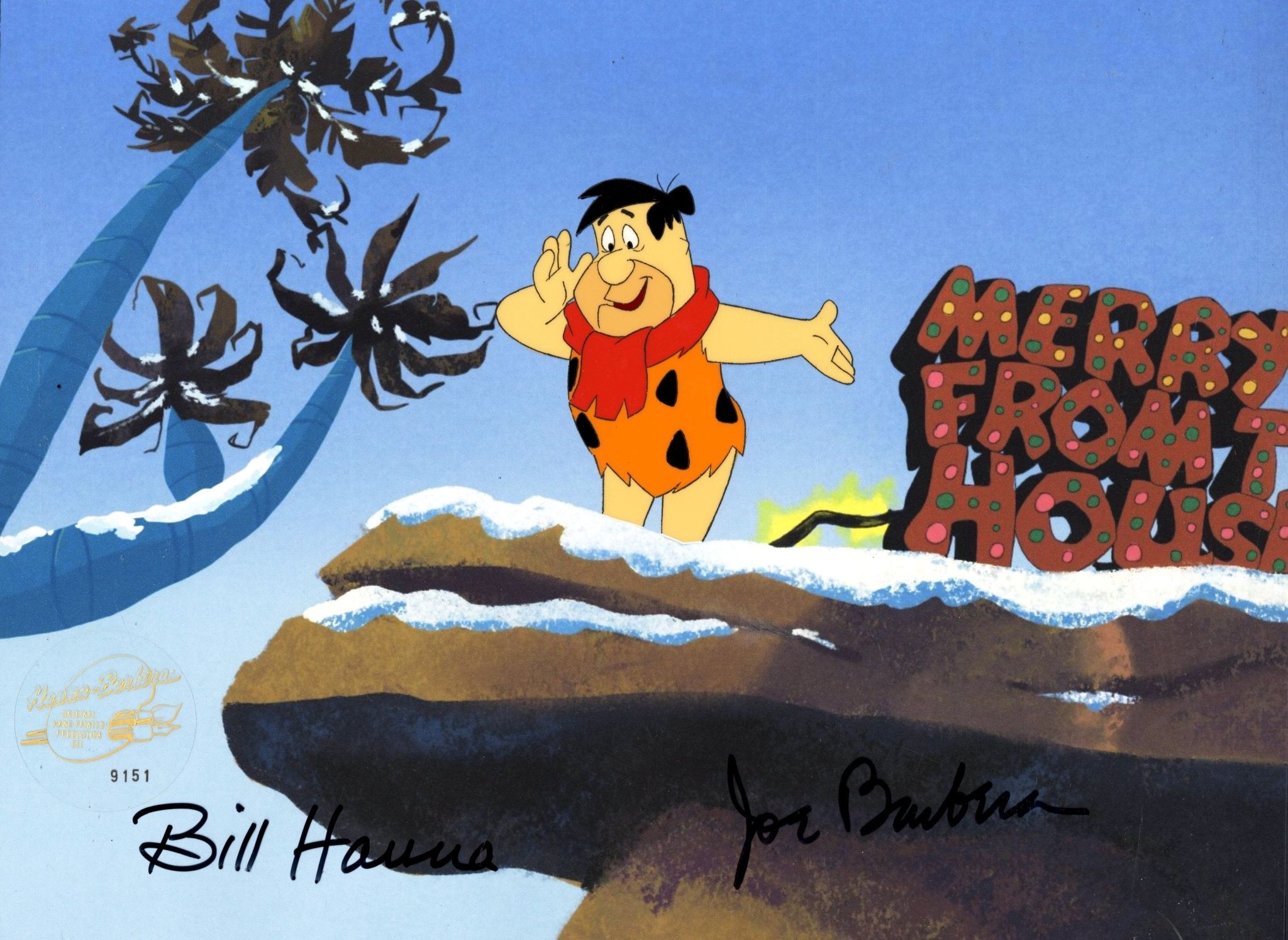 A Flintstone Christmas Original Production Cel Signed Bill Hanna and Joe Barbera: Fred Flintstone