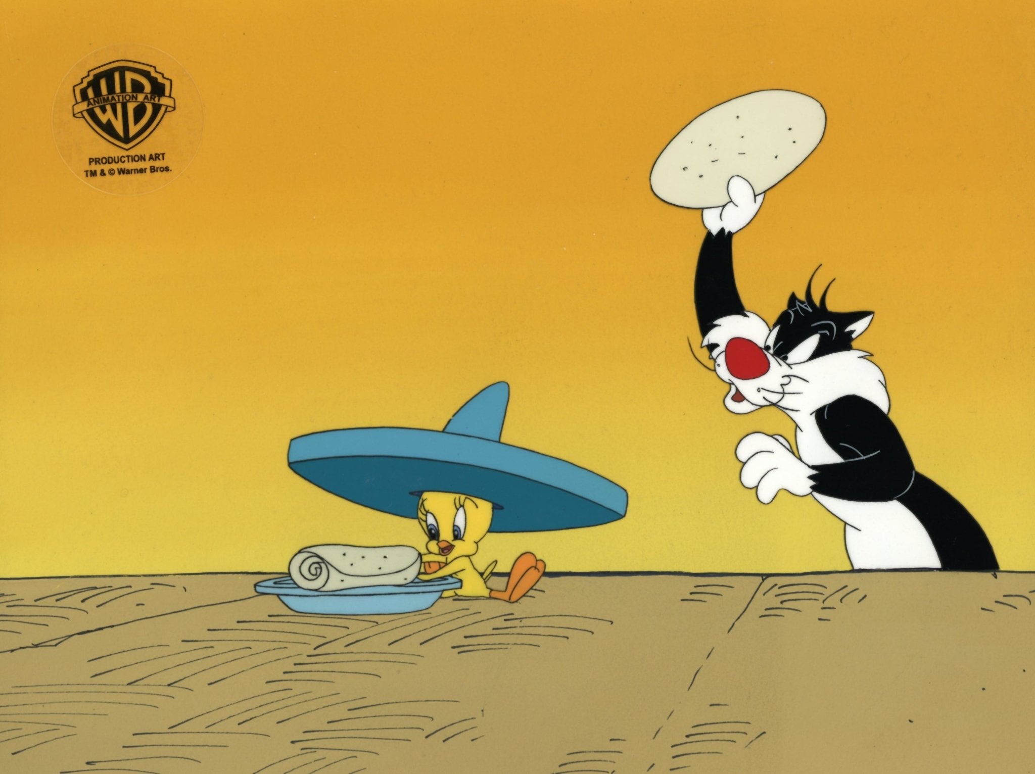 ABOUT THE IMAGE: The Sylvester & Tweety Mysteries, produced by Warner Bros. Animation, is an animated television series which aired from 1995 to 2000 on Kids' WB!, with the final episode airing in 2002 on Cartoon Network. The show follows Looney Tunes characters Sylvester and Tweety, along with their owner Granny and bulldog Hector, as they solved mysteries around the world. Sylvester, of course, is still trying to eat Tweety, but is frequently foiled by Hector who acts as the bird's bodyguard. This piece comes with a certificate of authenticity.