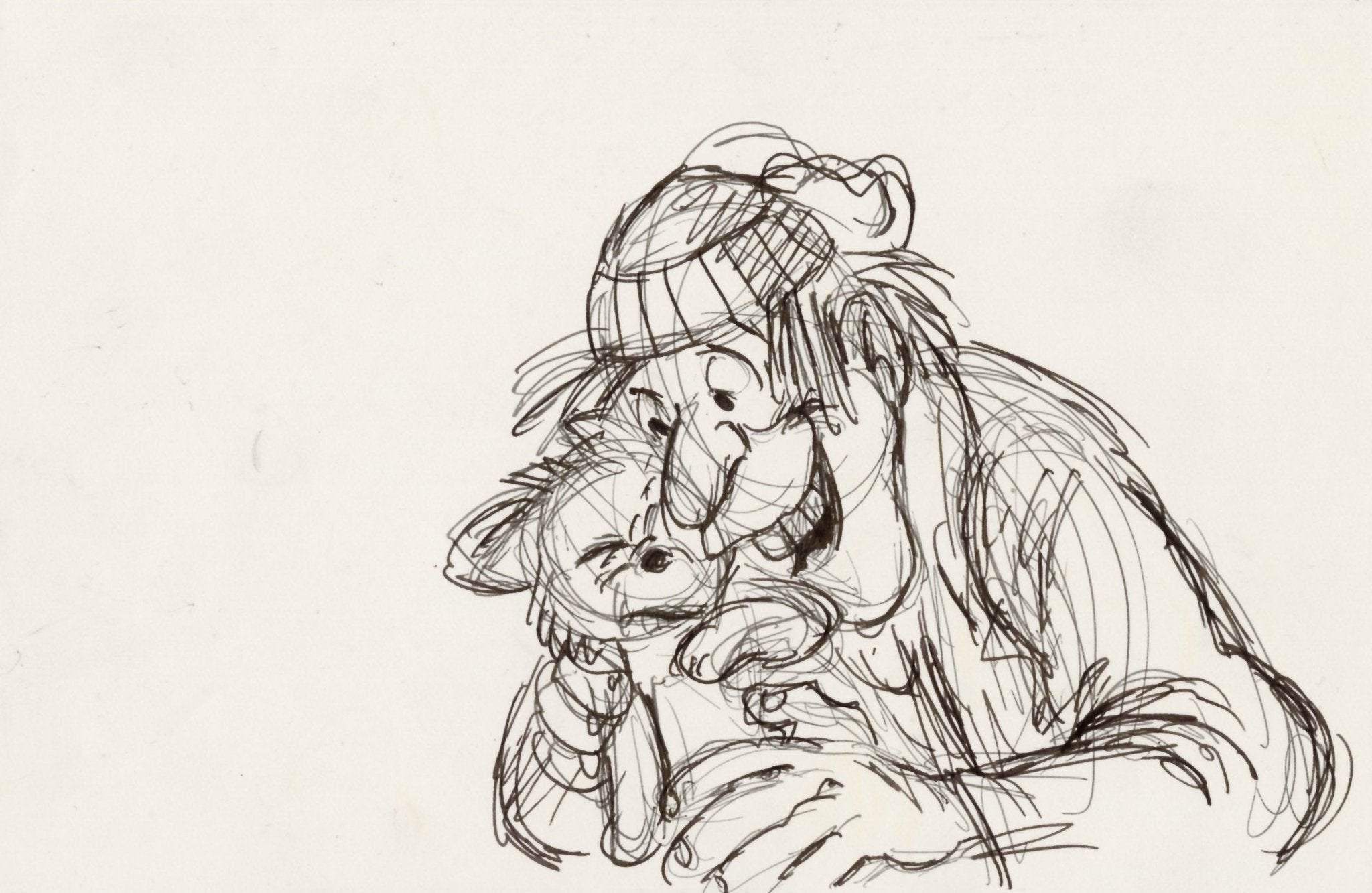 ABOUT THE IMAGE: This storyboard from Oliver & Company was originally drawn by Ted Berman (1911 - 2001), longtime story artist and writer and co-director of The Fox and the Hound and The Black Cauldron. The film put a spin on the classic tale of Oliver Twist and was something new for Disney, a trial run for including extensive computer animation in their features and returning to a musical format for their animated films.