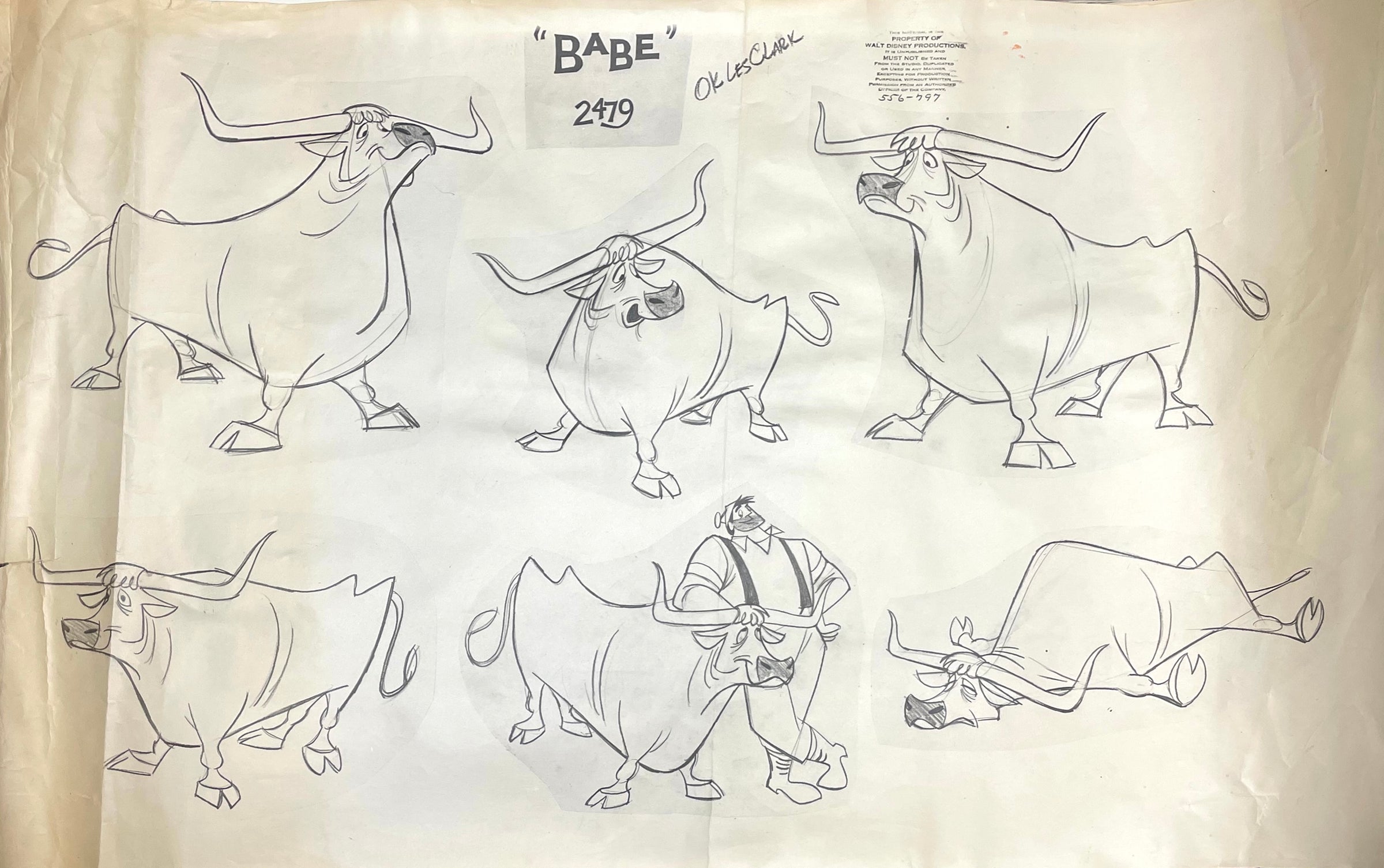 NOTES: "OK Les Clark" has been reproduced near the title of this model sheet. This piece shows signs of heavy production wear: creases and wrinkling. Due to its size, this piece will be shipped rolled in a tube.