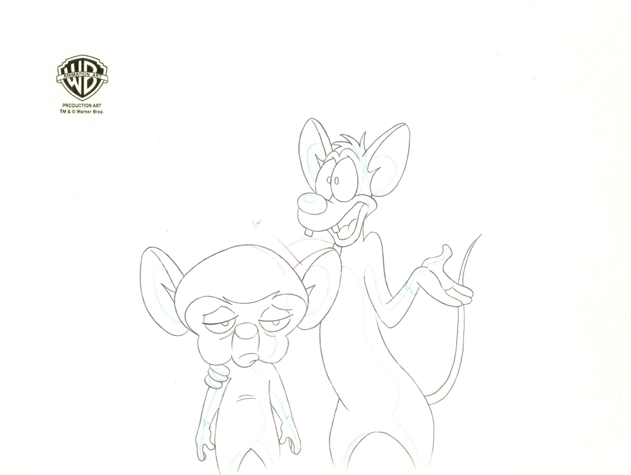ABOUT THE IMAGE: Pinky and the Brain is a cartoon that follows a self-proclaimed genius, The Brain, and his dimwitted sidekick, Pinky, as they try to conquer the world. Pinky and the Brain was the first animated television series to be presented in Dolby Surround. It was created by Tom Ruegger and the fourth collaboration between Steven Spielberg's production company, Amblin Entertainment and Warner Bros. Animation. The characters first appeared in 1993 as a recurring skit on the show Animaniacs. Thanks to its popularity it was later spun off as a series. There were 66 episodes produced. This piece comes with a certificate of authenticity.