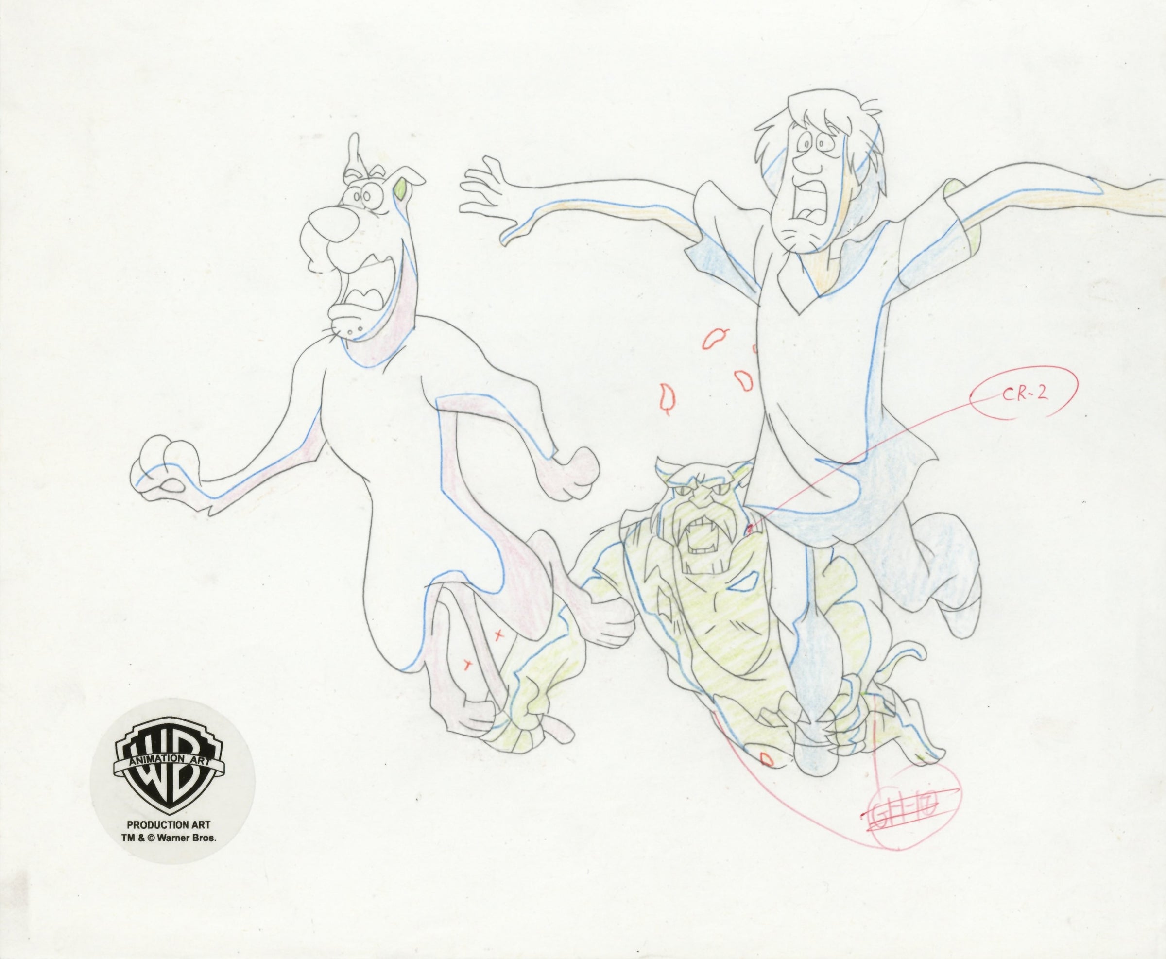 Scooby-Doo on Zombie Island Original Production Drawing: Scooby, Shaggy, Werecat