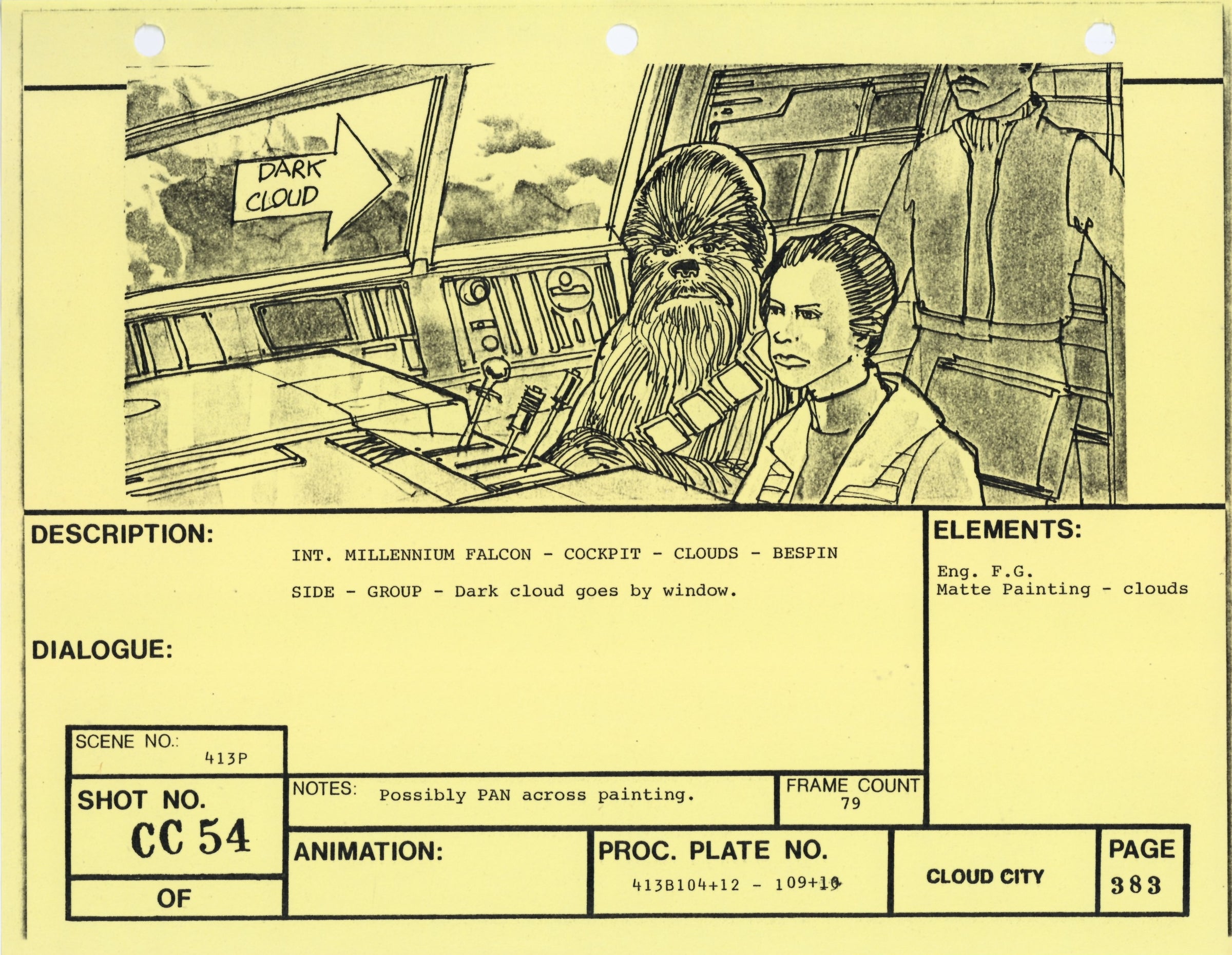 ABOUT THE ART: This storyboard print comes from the collection of award-winning miniature and optical effects artist Lorne Peterson. Peterson was invited by fellow model maker John Dykstra to work in the miniature and optical effects department of George Lucas' Star Wars: A New Hope, where he helped design and build the Star Destroyers, Imperial TIE fighters, and other classic vehicles. During pre-production, Peterson, Dykstra, and their cohort of fellow artists working under Lucas co-founded effects company Industrial Light & Magic.