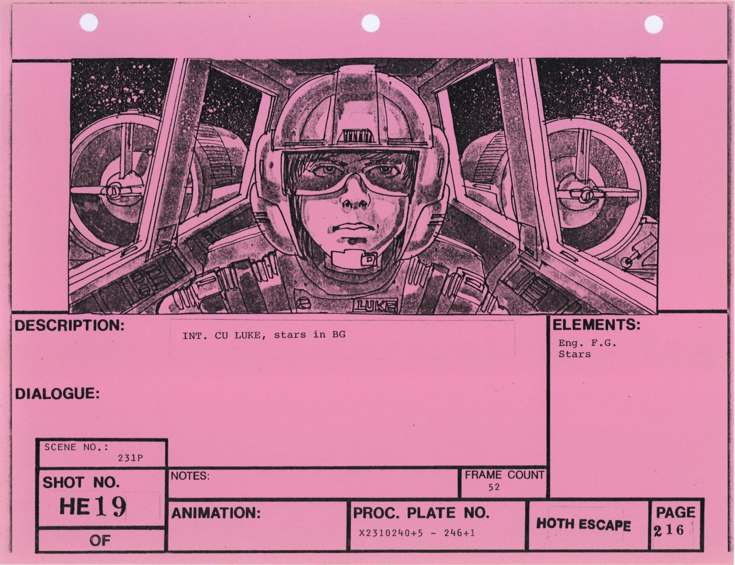 ABOUT THE ART: This storyboard print comes from the collection of award-winning miniature and optical effects artist Lorne Peterson. Peterson was invited by fellow model maker John Dykstra to work in the miniature and optical effects department of George Lucas' Star Wars: A New Hope, where he helped design and build the Star Destroyers, Imperial TIE fighters, and other classic vehicles. During pre-production, Peterson, Dykstra, and their cohort of fellow artists working under Lucas co-founded effects company Industrial Light & Magic.