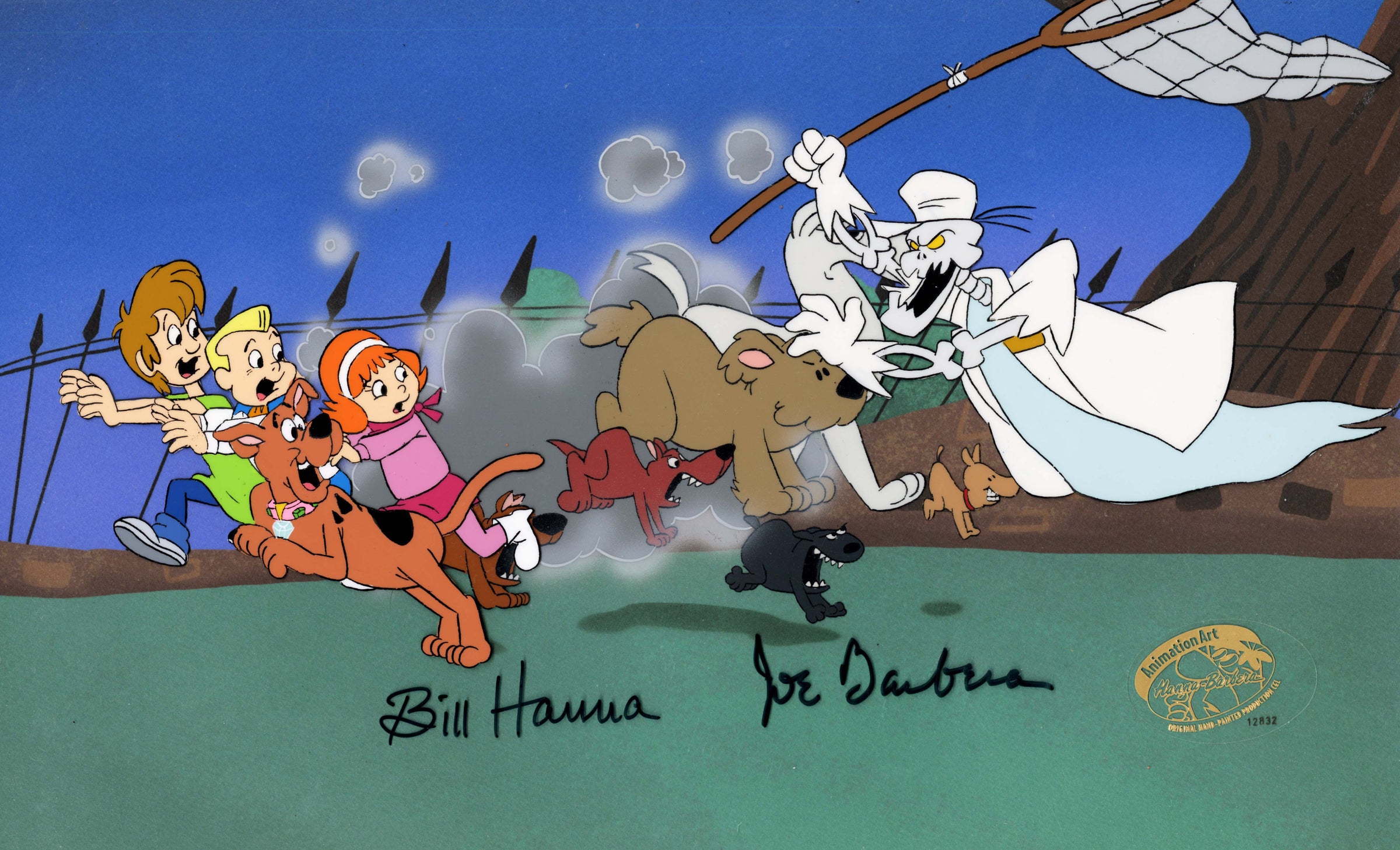 A Pup Named Scooby-Doo Original Production Cel Signed by Bill Hanna and Joe Barbera: Mystery Gang