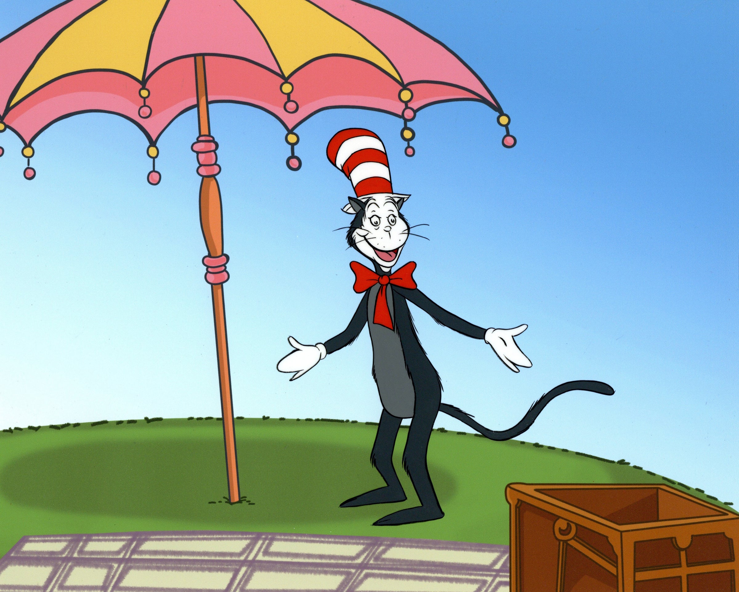 ABOUT THE IMAGE: This original hand-painted animation cel of the Cat in the Hat was created in the DePatie-Freleng Studio ink-and-paint department and photographed during the making of "The Grinch Grinches the Cat and the Hat," a television special written and co-produced by Dr. Seuss (Theodor Geise).