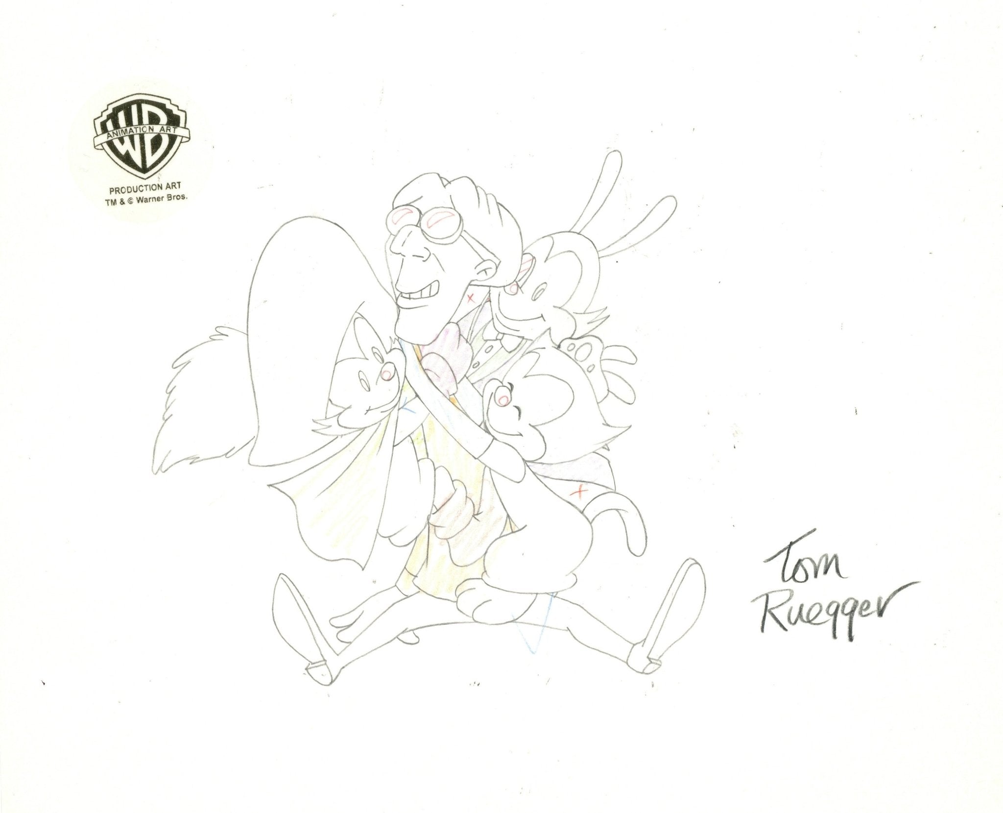 Animaniacs Original Production Drawing Signed by Tom Ruegger: Yakko, Wakko, Dot, Dr. Scratchansniff