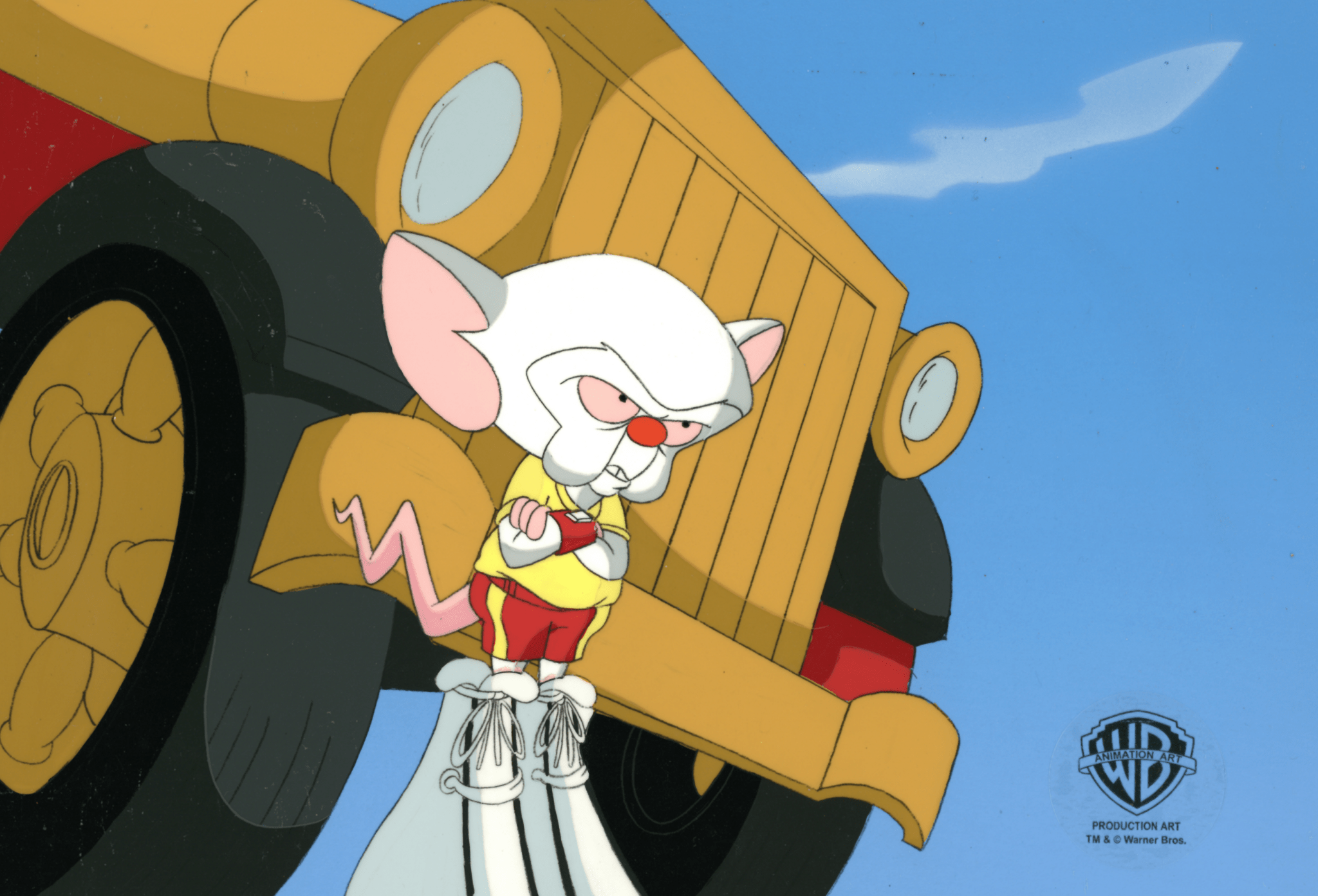 ABOUT THE IMAGE: Pinky and the Brain is a cartoon that follows a self-proclaimed genius, The Brain, and his dimwitted sidekick, Pinky, as they try to conquer the world. Pinky and the Brain was the first animated television series to be presented in Dolby Surround. It was created by Tom Ruegger and the fourth collaboration between Steven Spielberg's production company, Amblin Entertainment and Warner Bros. Animation. The characters first appeared in 1993 as a recurring skit on the show Animaniacs. Thanks to its popularity it was later spun off as a series. There were 66 episodes produced. This piece comes with a certificate of authenticity.