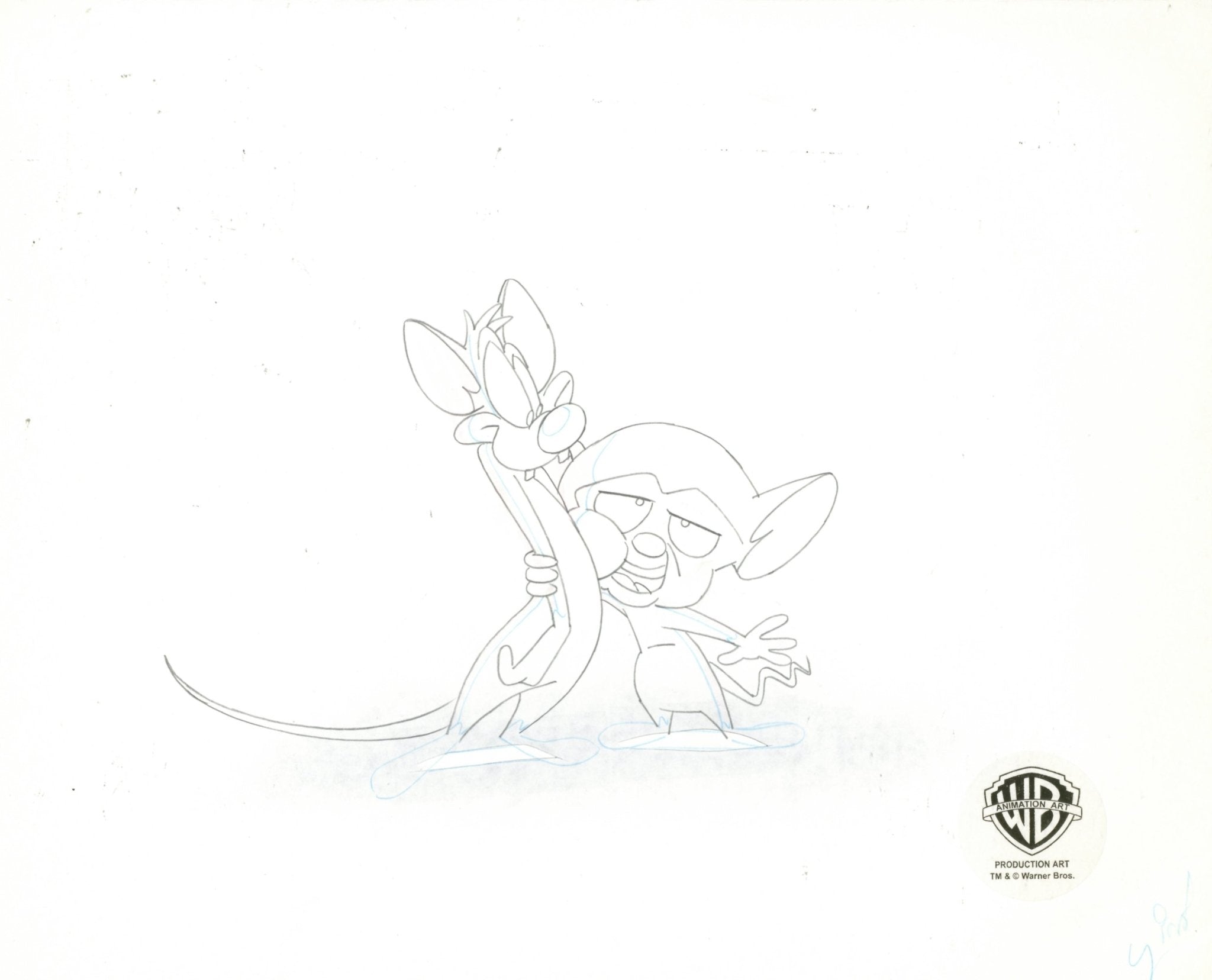 ABOUT THE IMAGE: Pinky and the Brain is a cartoon that follows a self-proclaimed genius, The Brain, and his dimwitted sidekick, Pinky, as they try to conquer the world. Pinky and the Brain was the first animated television series to be presented in Dolby Surround. It was created by Tom Ruegger and the fourth collaboration between Steven Spielberg's production company, Amblin Entertainment and Warner Bros. Animation. The characters first appeared in 1993 as a recurring skit on the show Animaniacs. Thanks to its popularity it was later spun off as a series. There were 66 episodes produced. This piece comes with a certificate of authenticity.
