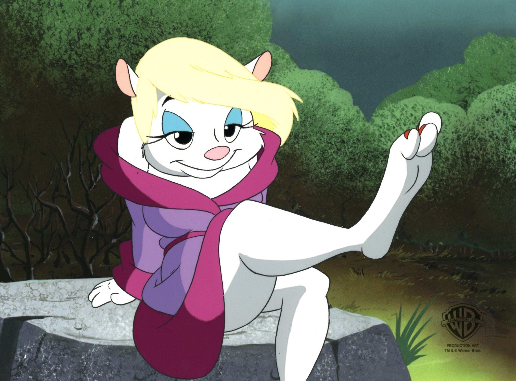 ABOUT THE MEDIUM: Original production cels are one-of-a-kind pieces of art that were used in the creation of an animated film or television show. Each has been hand-painted by studio artists on a piece of celluloid acetate, and has been photographed over a background painting to create a frame of the finished production.