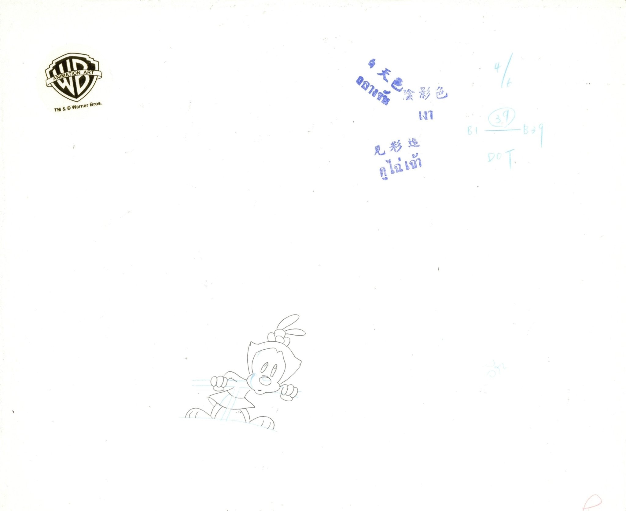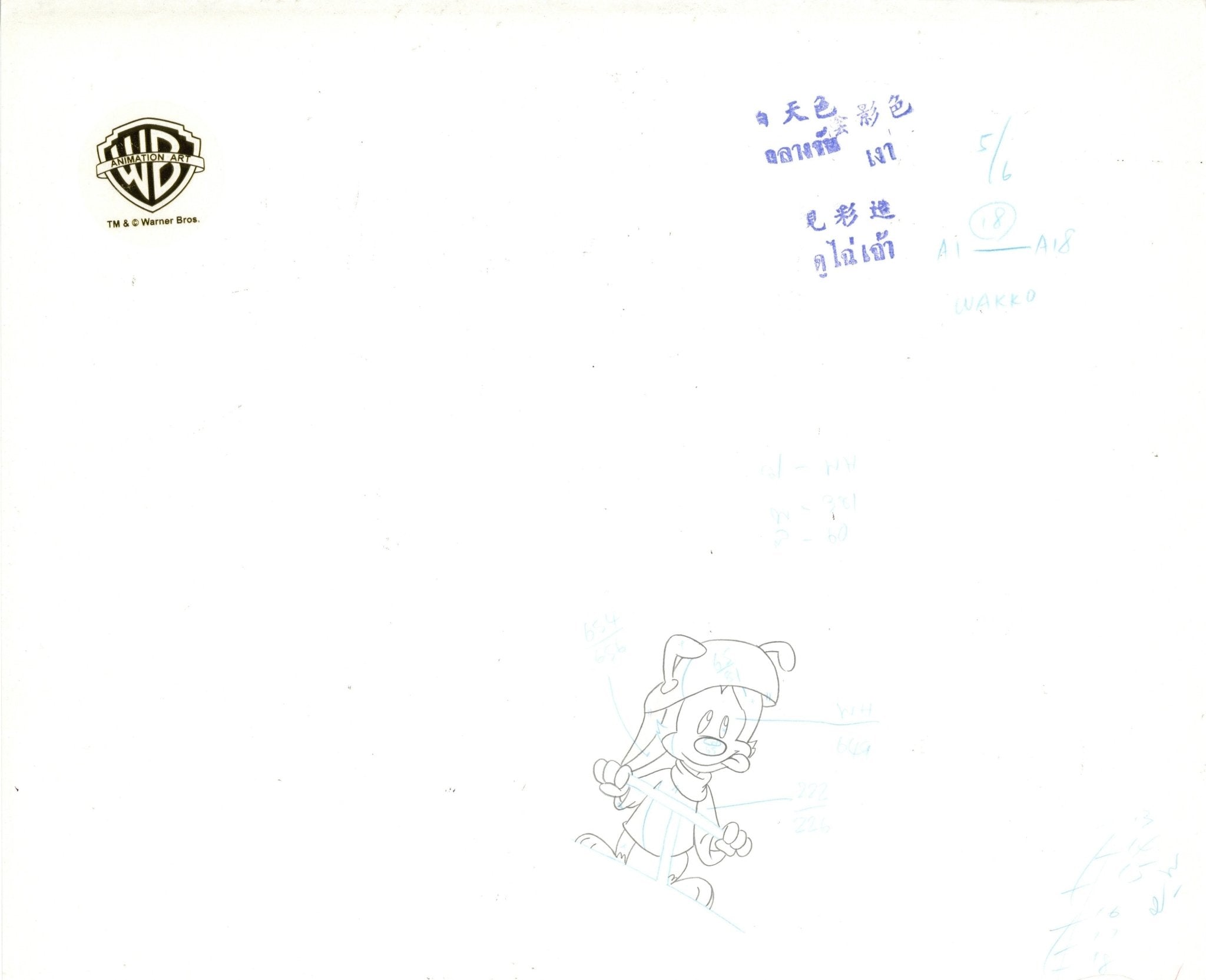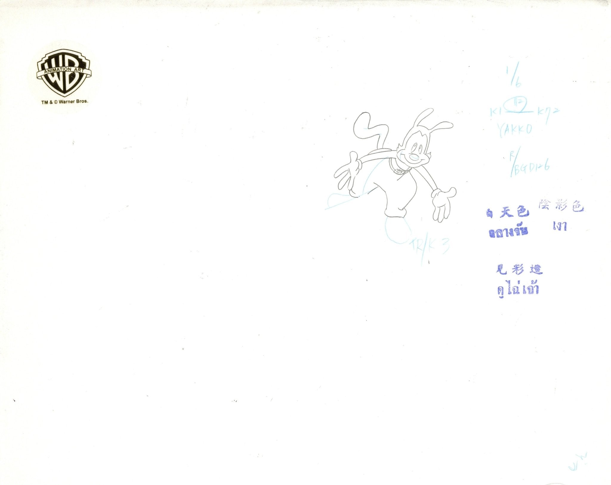 Animaniacs Original Production Cel with Matching Drawings Signed by Tom Ruegger: Yakko, Wakko, Dot