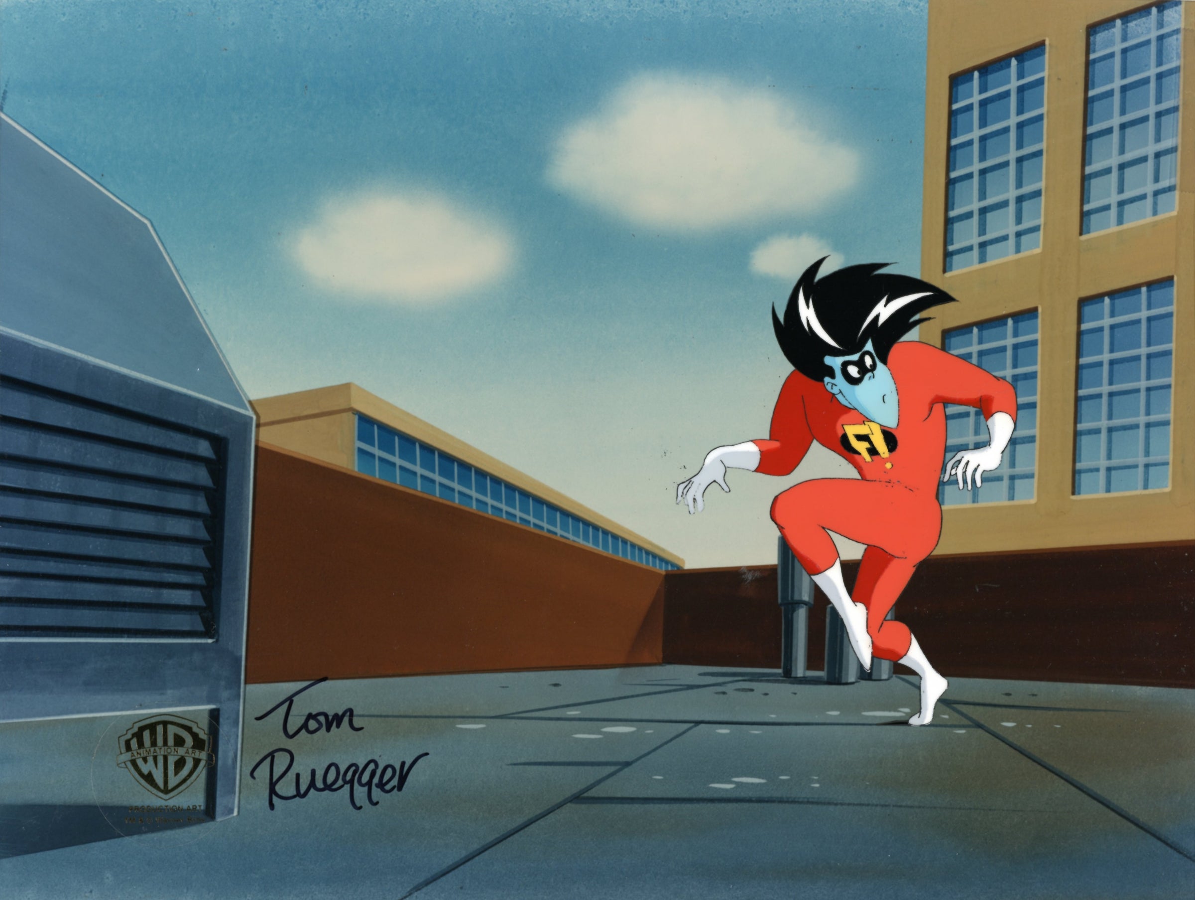 ABOUT THE IMAGE: Freakazoid! is an American superhero animated television series created by Bruce Timm and Paul Dini and developed by Tom Ruegger for the Kids' WB programming block of The WB. The series chronicles the adventures of the title character, Freakazoid, a crazy superhero who battles with an array of supervillains. The show also features mini-episodes of adventures of other bizarre superheroes. The show was produced by Amblin Entertainment and Warner Bros. Animation. The cartoon was the third animated series produced by the collaboration of Steven Spielberg and Warner Bros. Animation during the animation renaissance of the 1990s. This piece comes with a certificate of authenticity.