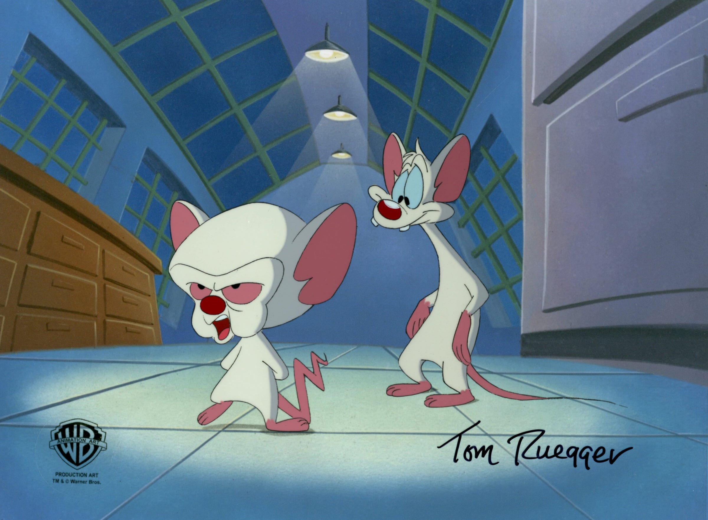Pinky And The Brain Original Production Cel Signed by Tom Ruegger: Pinky, Brain