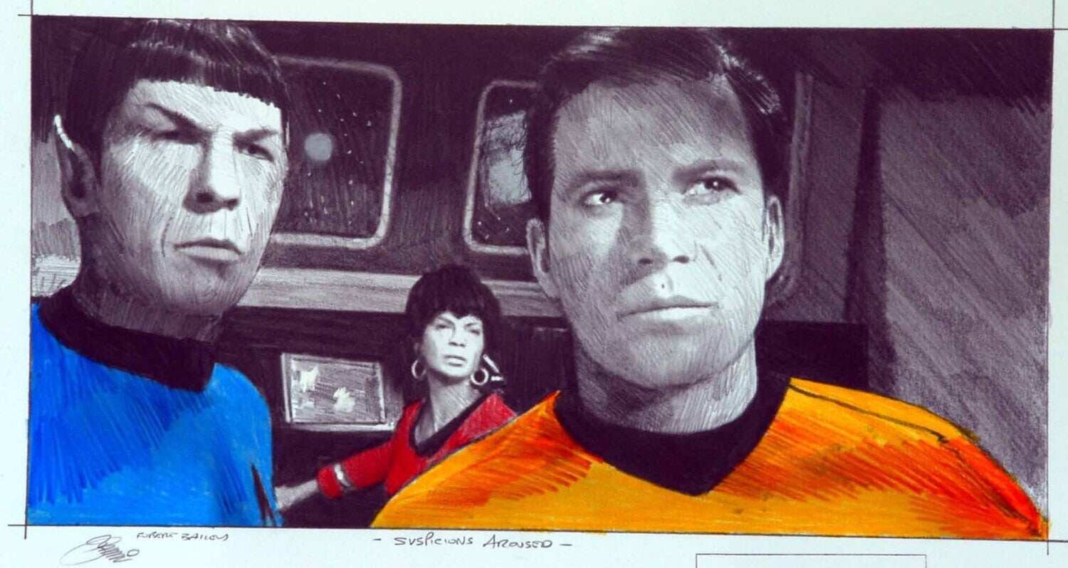 This items come framed with the pencil that William Shatner used to sign the art.