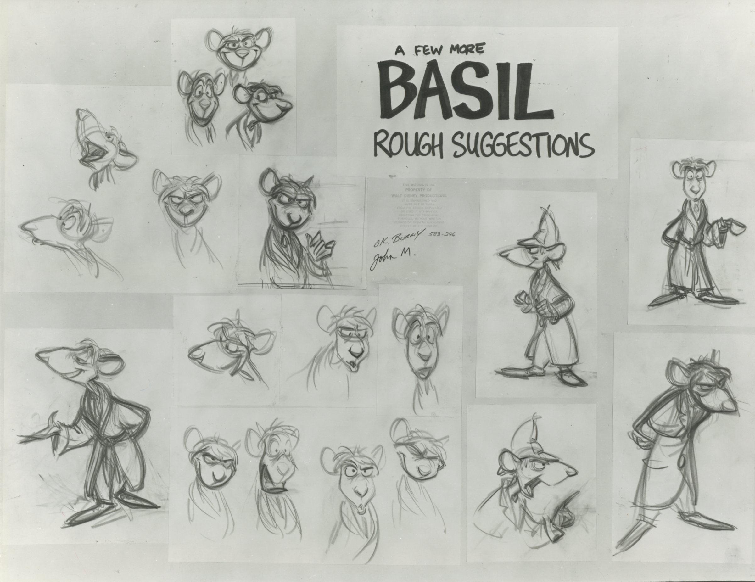 ABOUT THE MEDIUM: A model sheet is a group of character drawings illustrating different poses and expressions of a cartoon character. Because a number of artists worked on a single cartoon, these sheets were circulated to the animators to give a uniform look and feel to a character throughout a production.