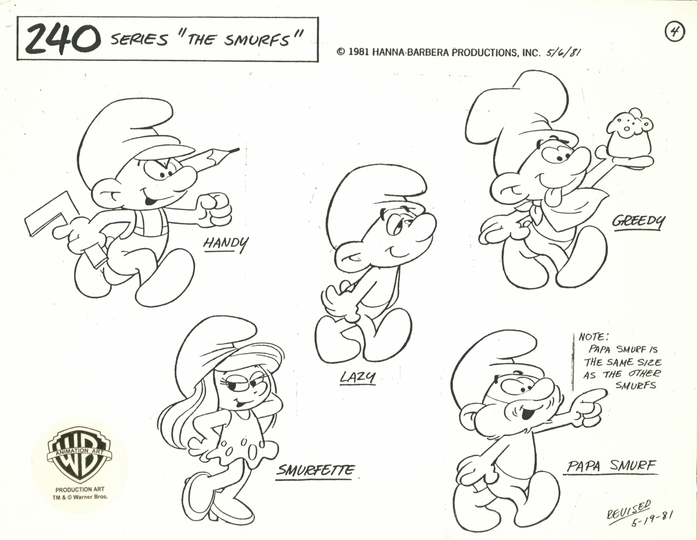 Handy, Lazy, Greedy, Smurfette, Papa Smurf